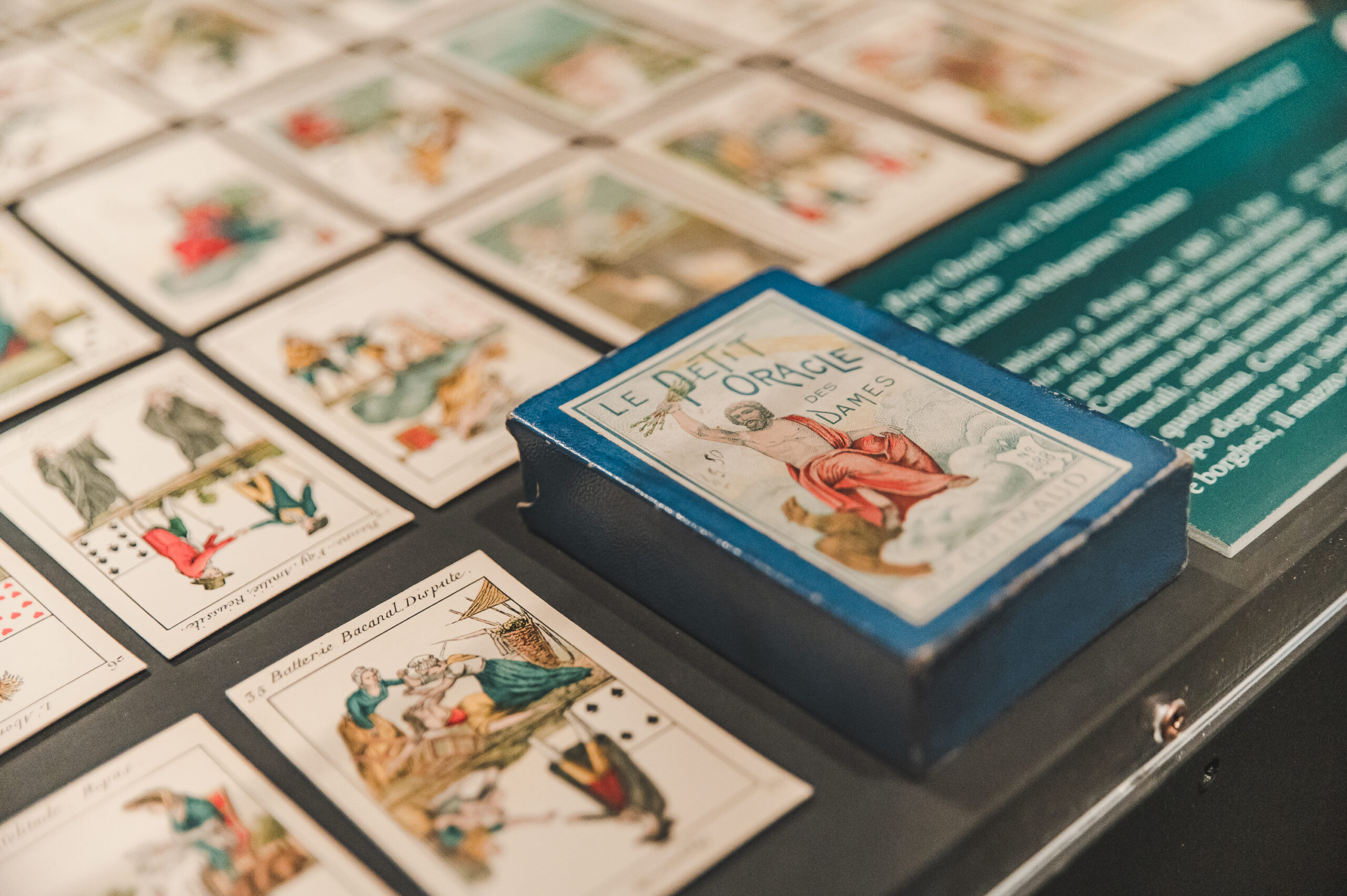 Tra le presenze più suggestive: le visionarie stampe ottocentesche della collezione Invernizzi dedicate alle figure delle fortune-teller, rari mazzi di sibille e tarocchi provenienti dalla collezione privata del curatore e affascinanti oggetti originali carichi di simbolismo arcano, concessi dal Museo della Stregoneria di Torino.